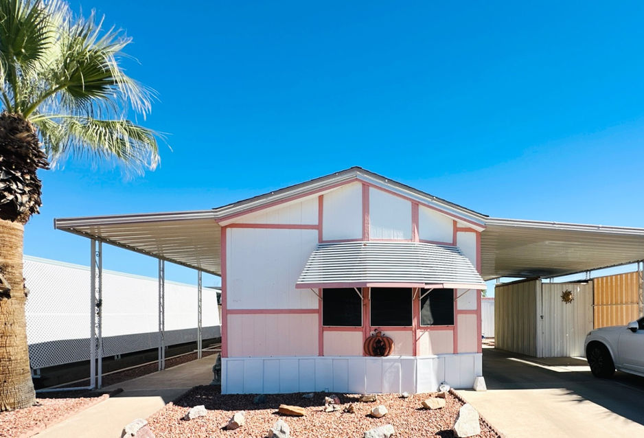 Located in the peaceful gated 55+ Meridian community, this spacious and move-in-ready 1996 Skyline Meadow Ridge home (16x66, 1,056 sq. ft.) offers comfort, charm, and convenience. Family owned since new and situated along the quiet back wall of the park, this home has been thoughtfully renovated in 2025 with a freshly painted exterior and updated bathroom. Over the past four years, additional upgrades include a new asphalt roof, stainless steel appliances, a modern water heater, and a new A/C heat pump system. Inside, enjoy an open and inviting layout with a large pass-through kitchen featuring beautiful oak cabinetry, a stainless refrigerator, dishwasher, range, and plenty of counter space. The dining area opens to a bright living room and cozy den or office. The primary bedroom includes an en suite bathroom, and the guest room provides comfort and privacy for visitors. Laundry is conveniently located in the home. Step outside to enjoy Arizona living at its best-a screened porch for relaxing, a patio for entertaining, and a double carport with a storage shed. Desert landscaping keeps maintenance easy while providing a welcoming curb appeal. Meridian residents enjoy a vibrant, active community lifestyle with amenities including a heated pool, spa, fitness center, rec hall, library, clubhouse, and pet-friendly walking areas. Located near grocery stores, dining, and bus access, this home offers affordable and relaxed 55+ living in the heart of Apache Junction. #55PlusCommunity #ActiveSeniorLiving #GatedCommunity #ApacheJunction #MeridianPark #UpdatedHome #SnowbirdRetreat #ArizonaRetirement #ManufacturedHomeForSale #AffordableLiving #MesaSnowbirds